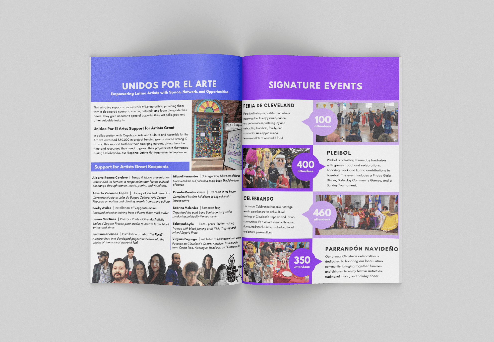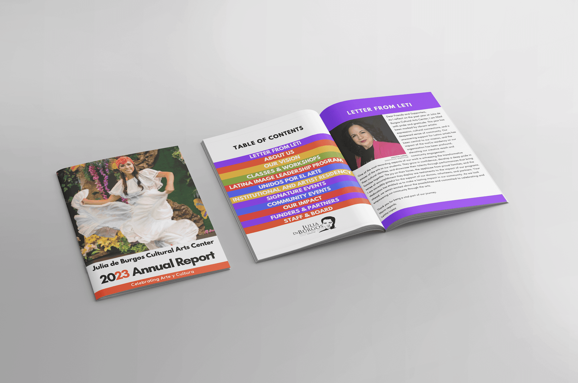 During my time at Julia de Burgos Cultural Arts Center as a Program Assistant and Graphic Designer, I had the chance to work with the team on various projects that really expanded my knowledge and skills. I worked on designing a sponsor packet for the organization that can be used to send to potential donors and partners. I designed the 2023 annual report as well as assisted with various tasks, including designing flyers and setting up workshops. I utilized Canva for all design work during this internship. I created a document that worked as a branding guidelines for the organization as they did not previously have one.