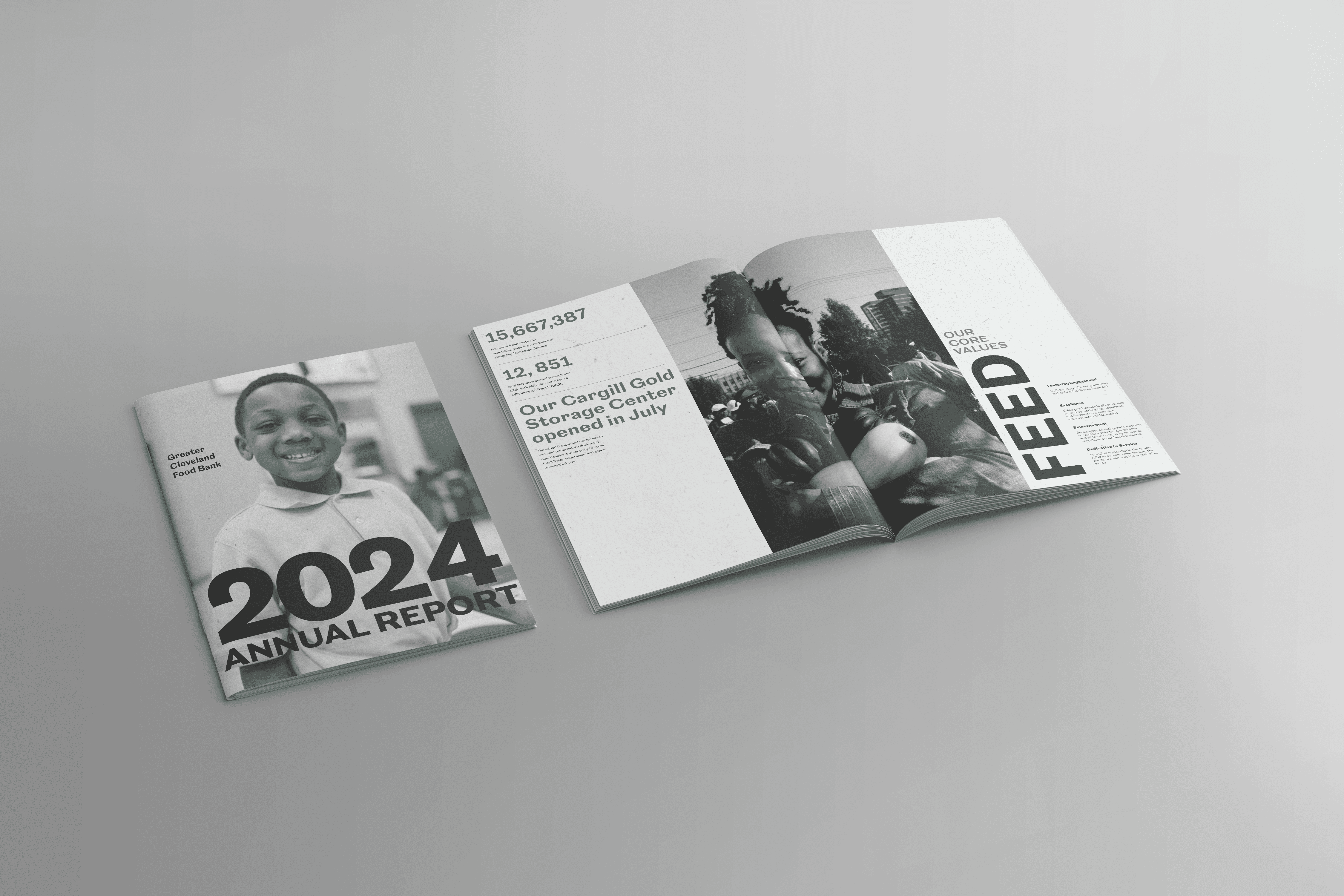 Redesigned the Greater Cleveland Food Bank’s annual report, crafting a clean and structured typographic layout that effectively communicates key information for the organization. The final annual report was a cohesive, visually engaging document that successfully communicated the organization’s achievements and goals. It provided stakeholders with detailed insights while reinforcing the organization’s credibility and brand identity. The report became a valuable tool for outreach, transparency, and building trust.
